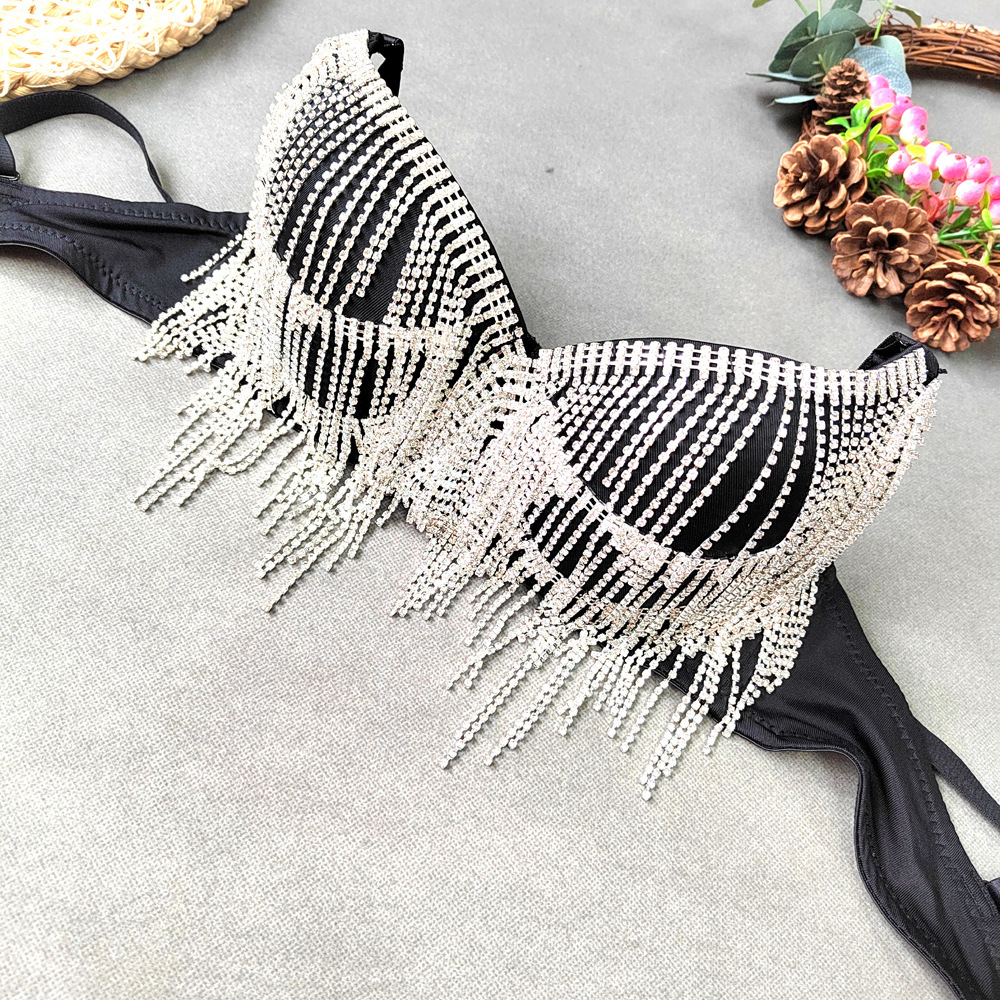 Rhinestone Tassel Bead Small Bra Super Short Sexy Top Top Thin Bottom Thick Shaping Bra Outer Wear Nightclub Wrapped Chest