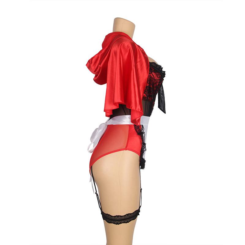 Plus Size Sexy Garter Belt Suit Women Christmas Performance Little Red Riding Hood Cosplay Clothing