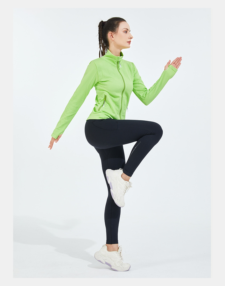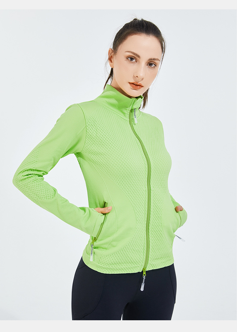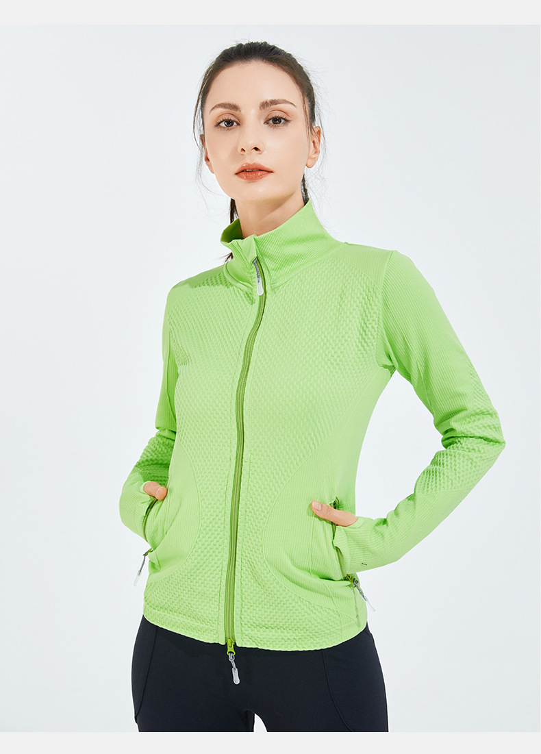 Sans couture polaire doublé coupe ajustée à manches longues décontracté veste de sport col montant couleur unie course Fitness Yoga porter femmes