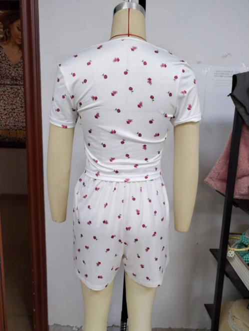 Printemps été décontracté confortable chemise à manches courtes Shorts imprimé col en V maison porter costume pour les femmes