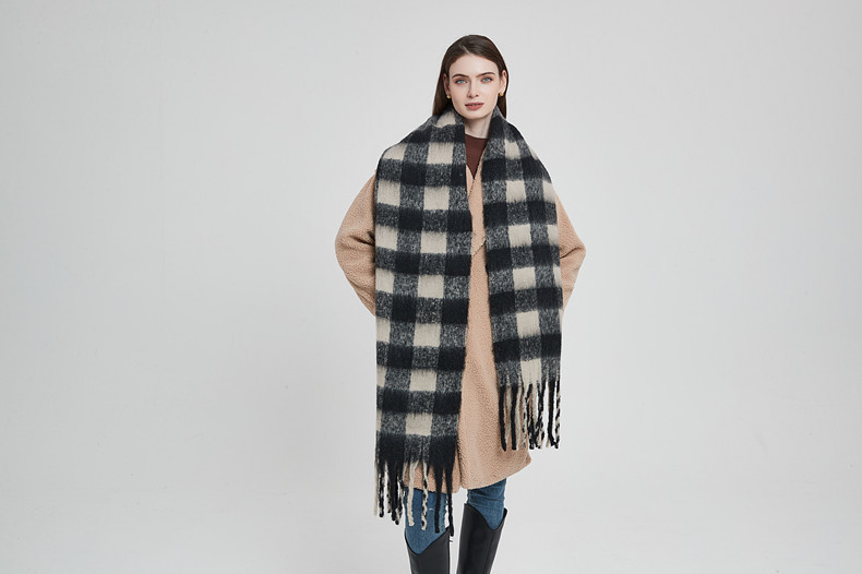 Autumn Winter Black White Plaid Thick Tassel Scarf Women Thickened Bib Shawl Manufacturer