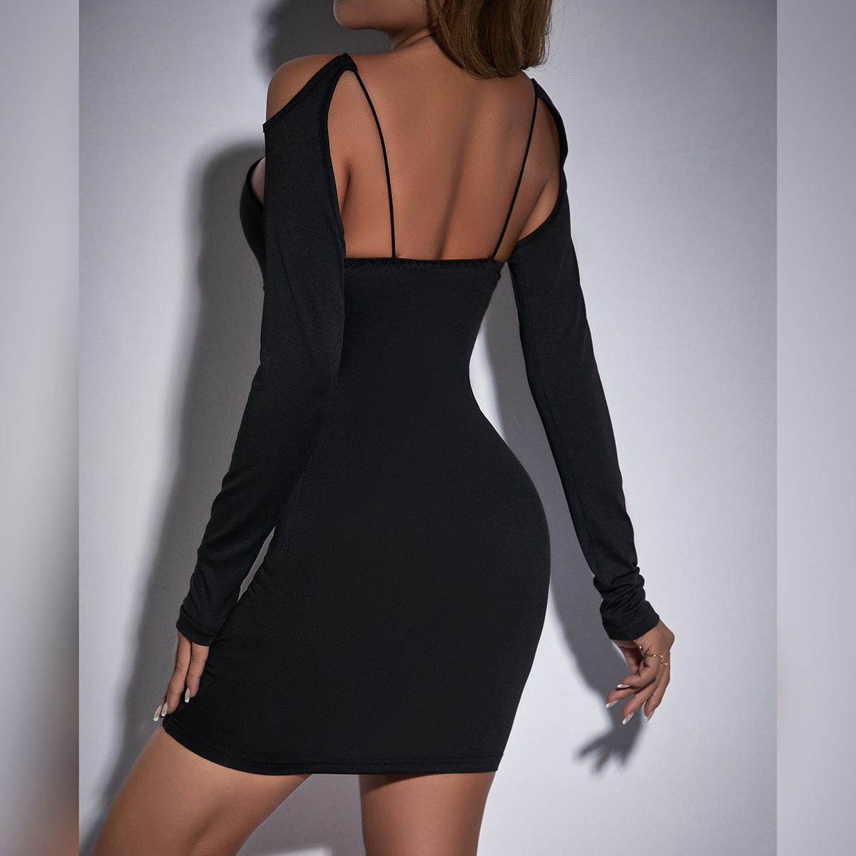Autumn Winter Women Clothing Sexy Hollow Out Cutout-out Backless Solid Color Long Sleeve Slim Sheath Dress for Women