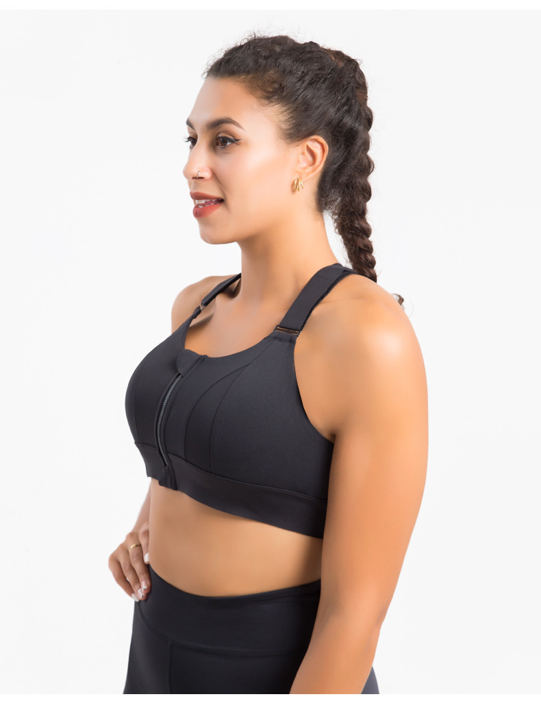 Criss Cross Back Velcro Sports Underwear Zipper Adjustable Shoulder Strap Shockproof Running Bra