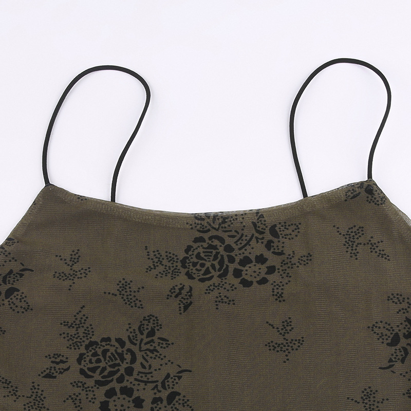 French Retro Elegant Adult Lady Woman Floral Print Maxi Dress Mesh Wooden Ear Off Neck Slim Strap Long One Step Dress