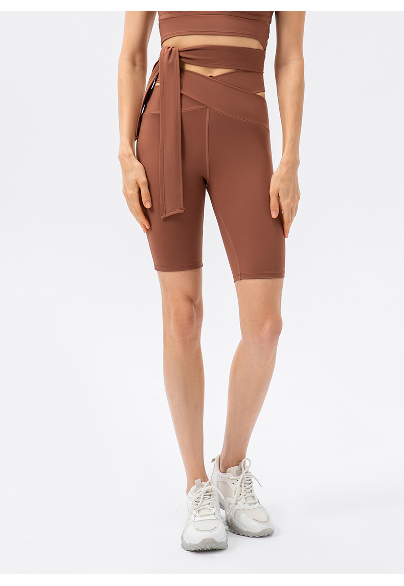 Naked Women Sense Cross High Waist Yoga Shorts No Embarrassment Line Skinny Hip Raise Belly Contracting Sports Shorts Crisscross