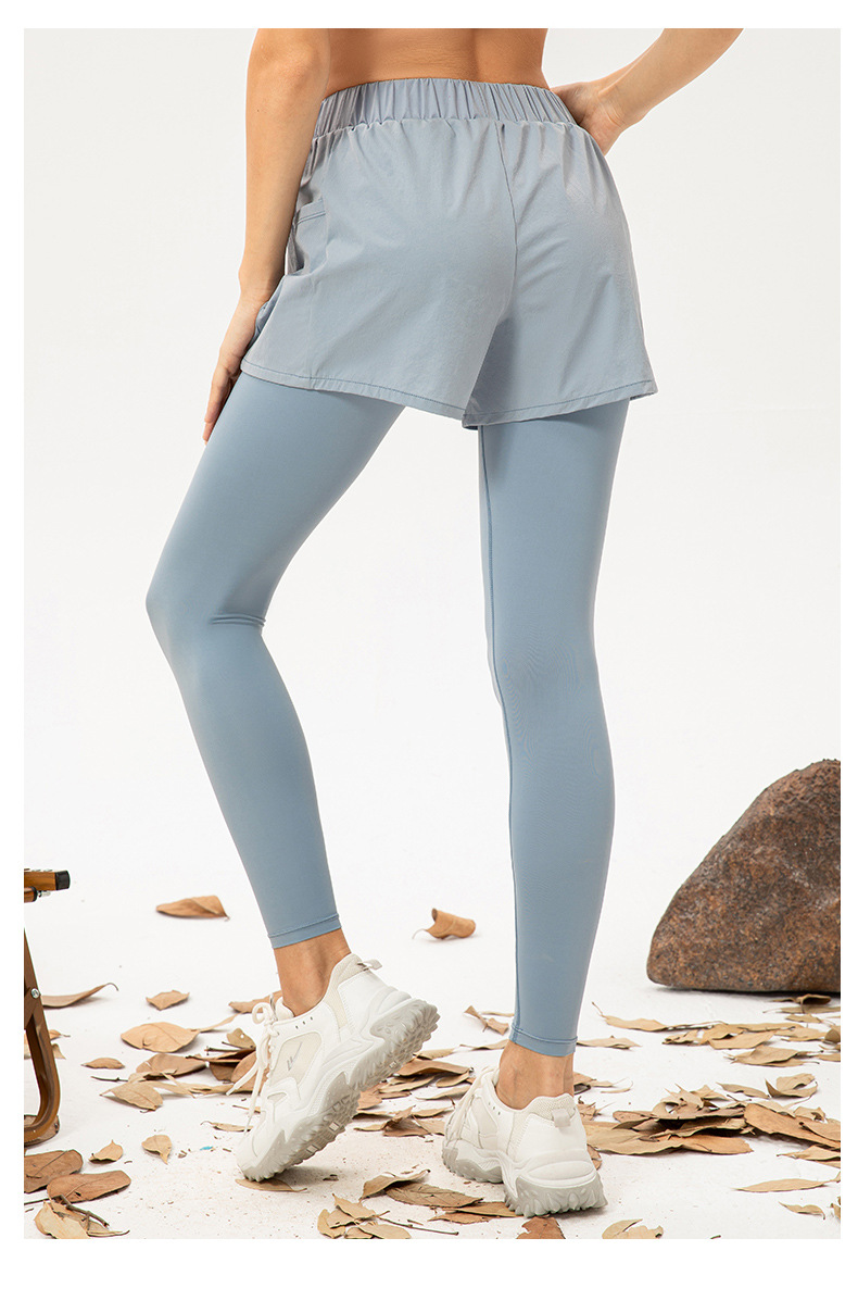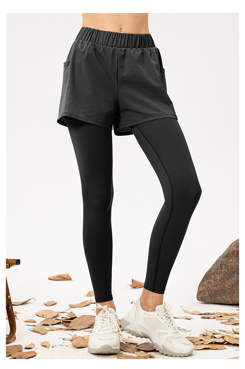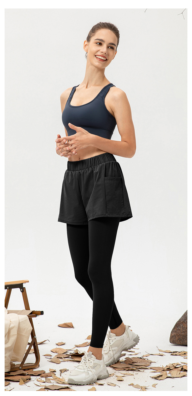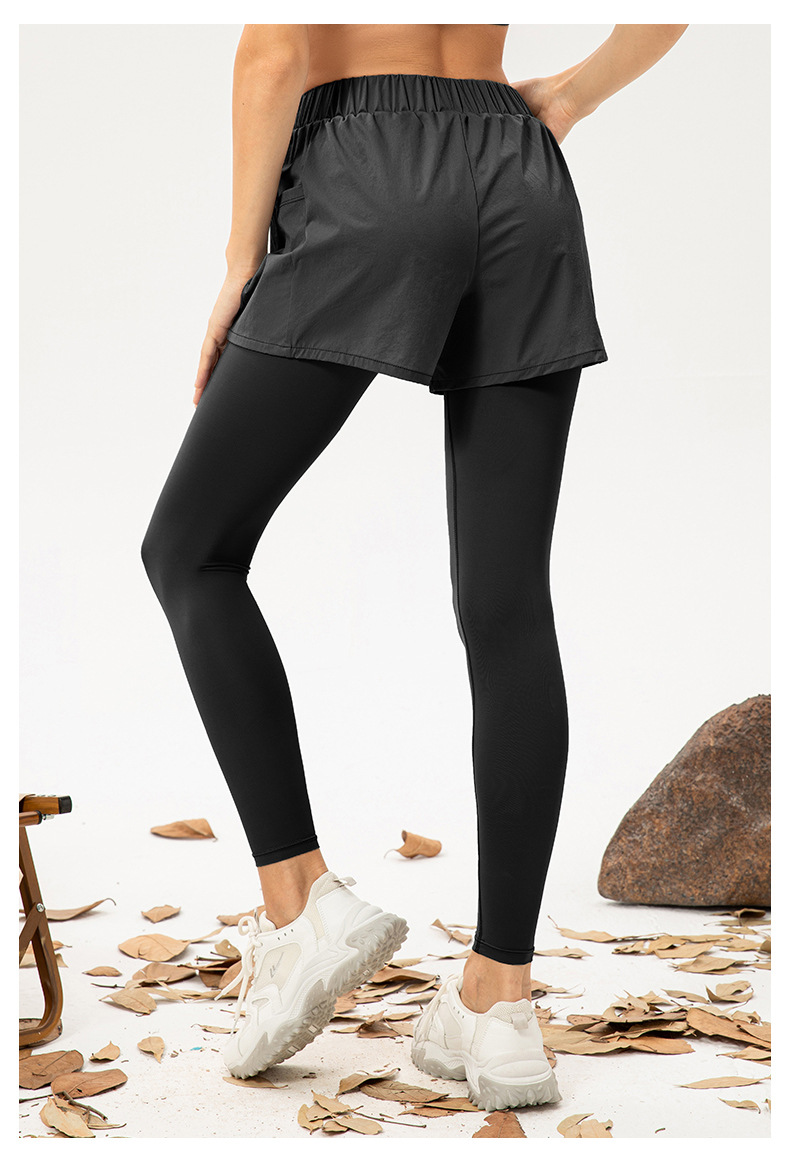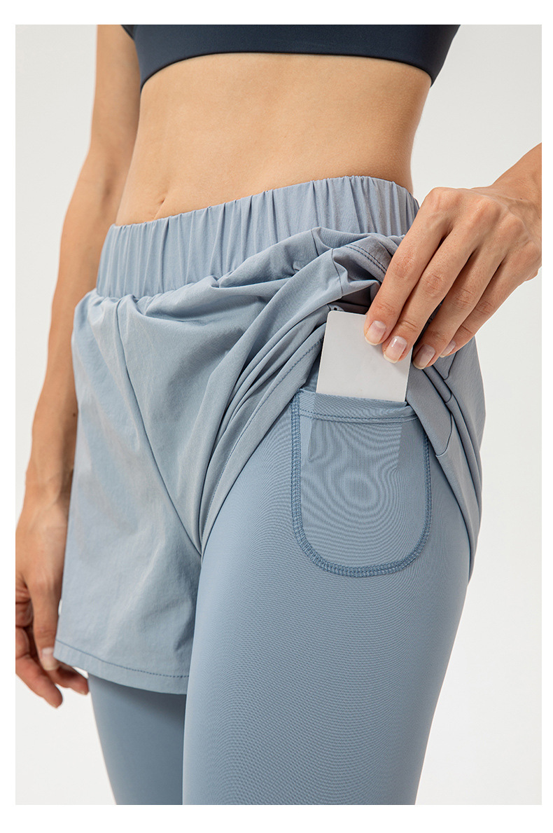 Women Faux Two Piece Yoga Trousers High Waist Hip Lift Fitness Pants Pocket Loose Breathable Running Workout Pants