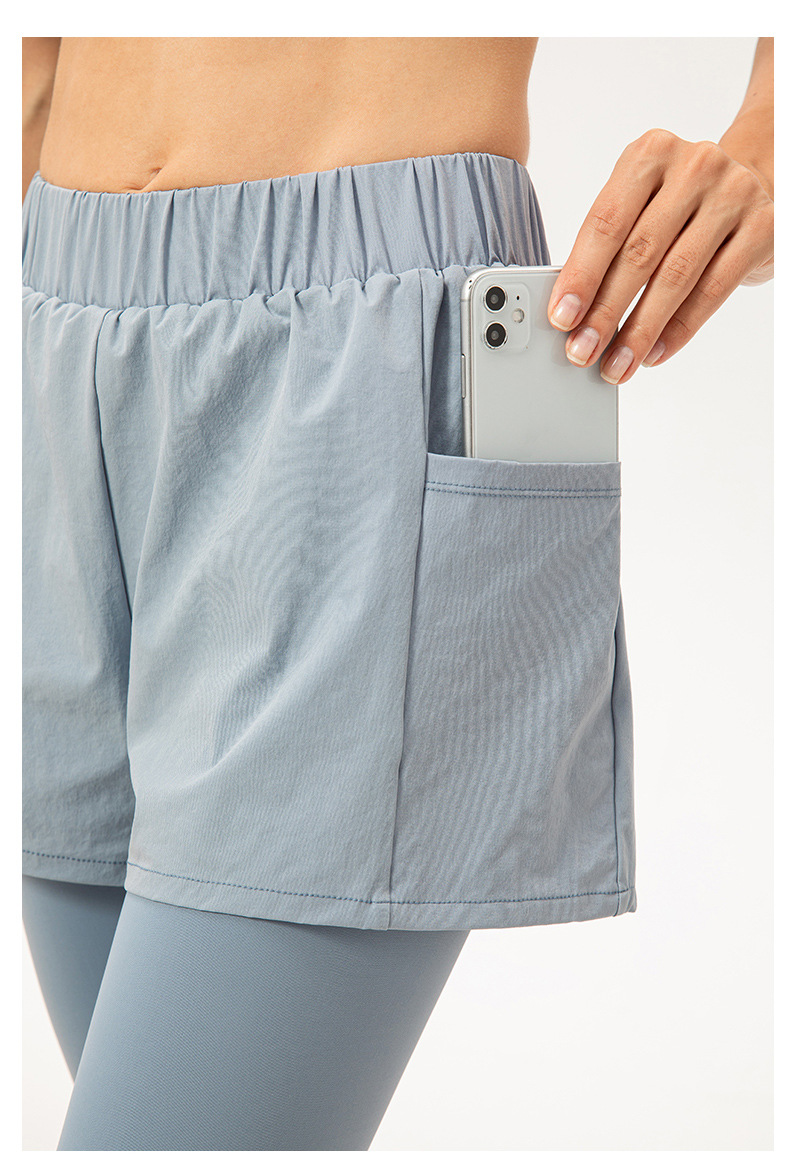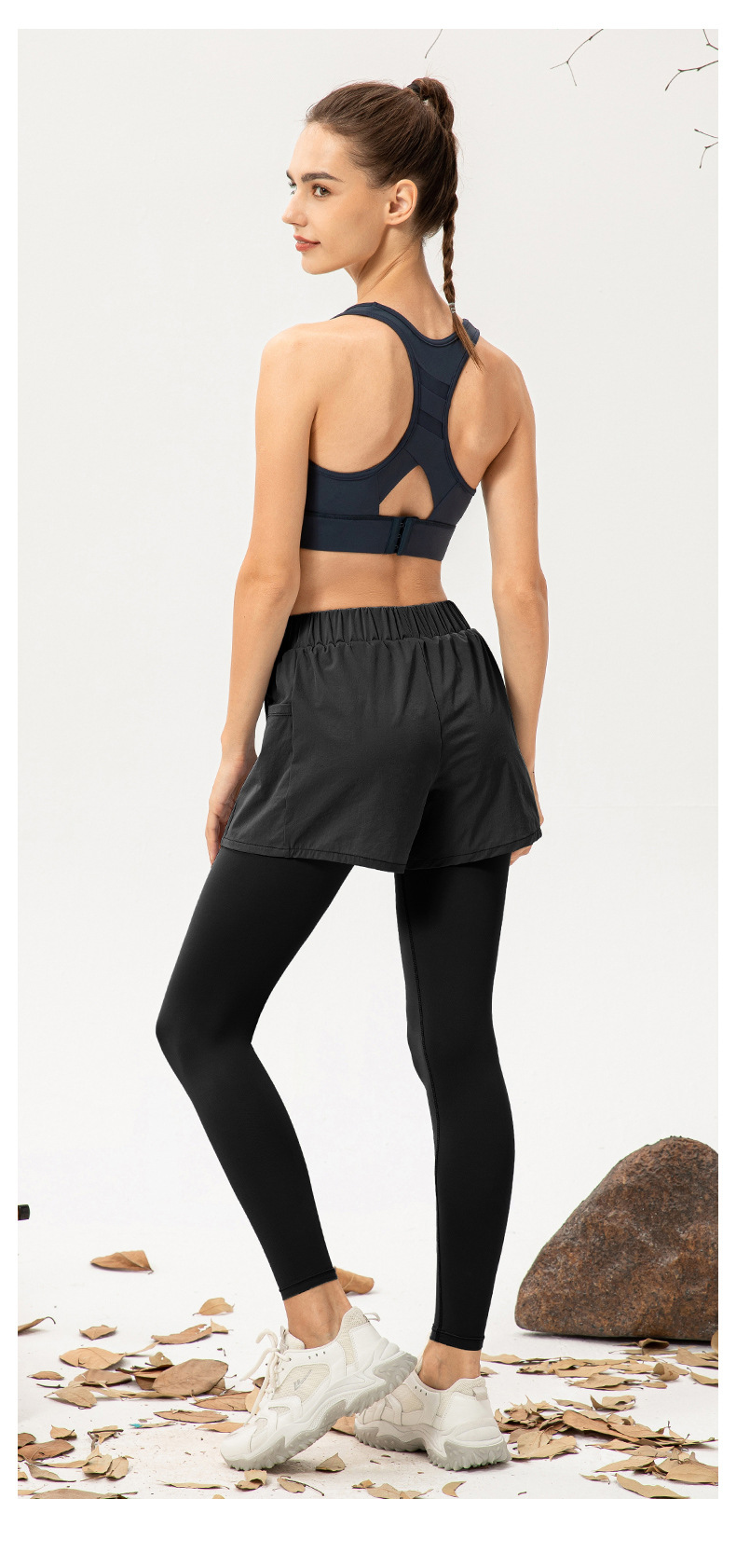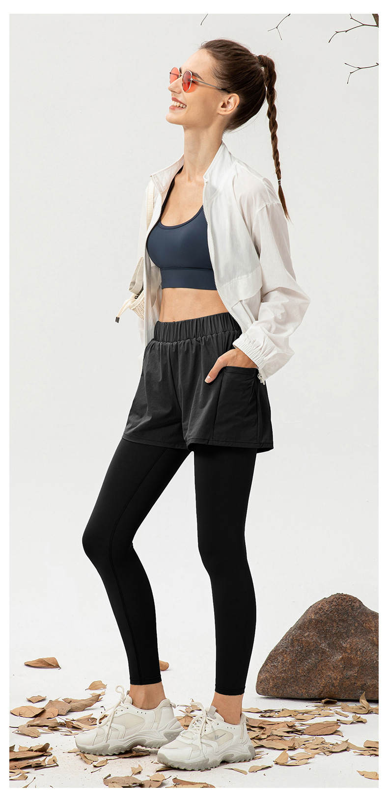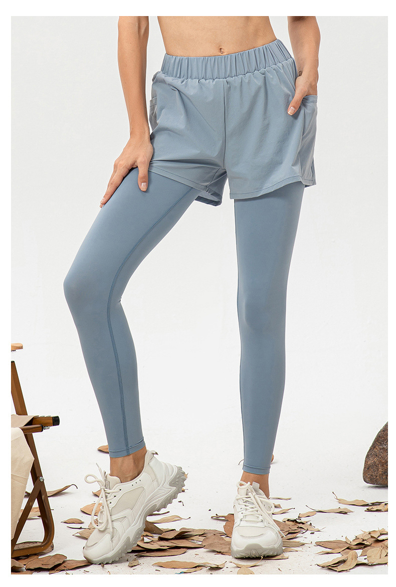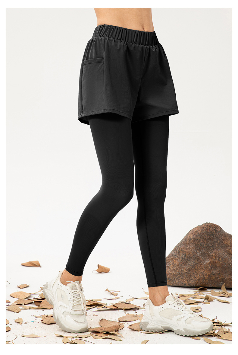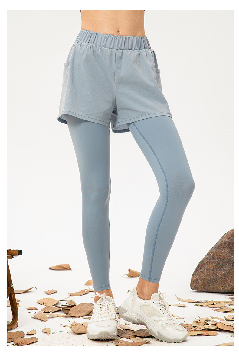 Women Faux Two Piece Yoga Trousers High Waist Hip Lift Fitness Pants Pocket Loose Breathable Running Workout Pants