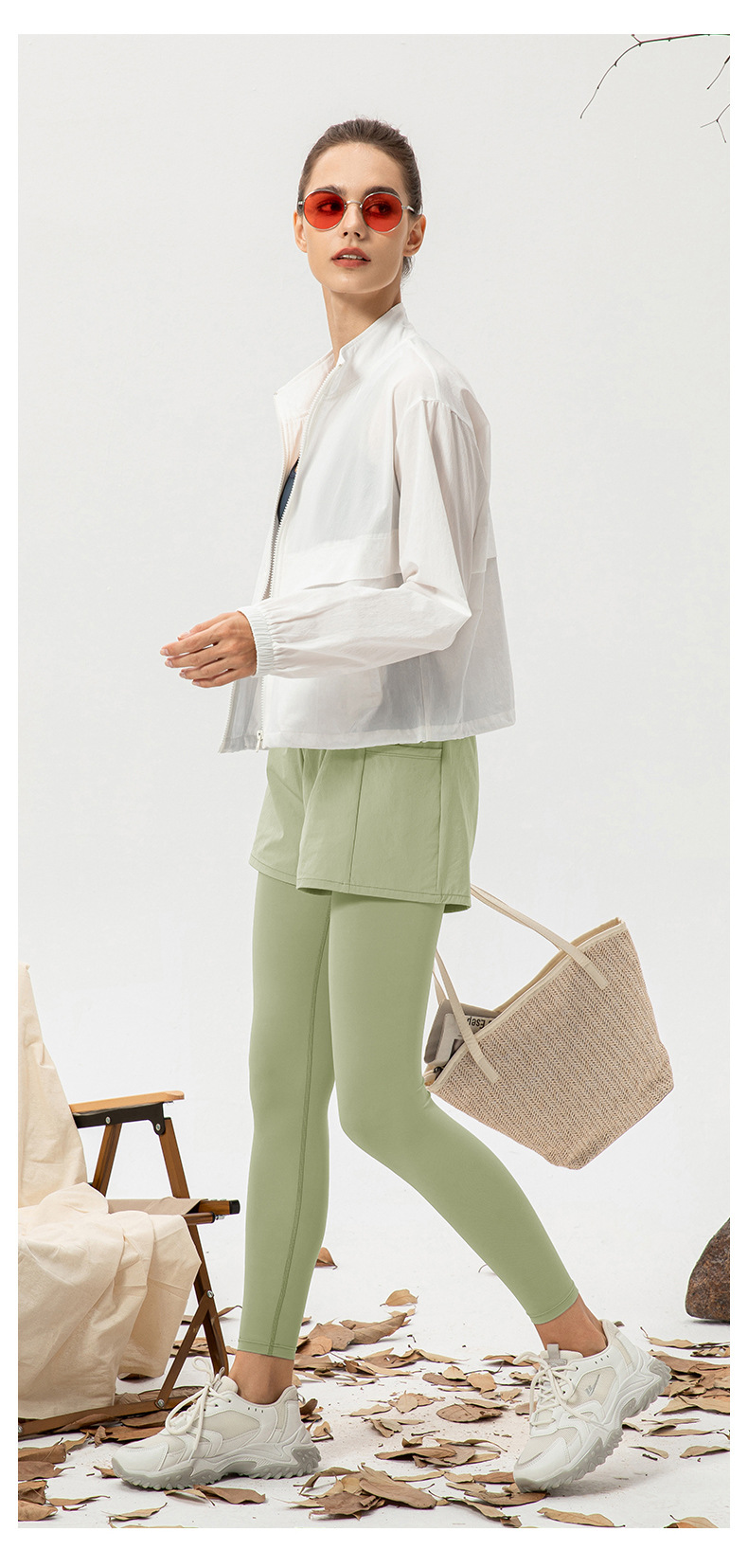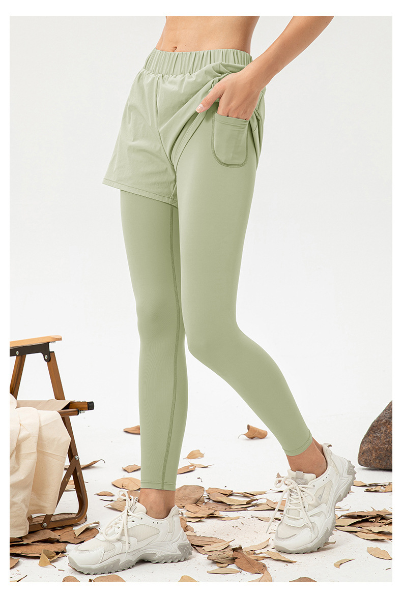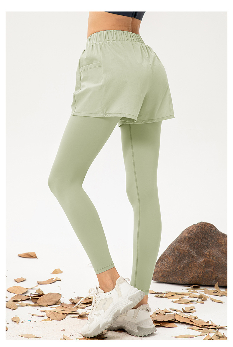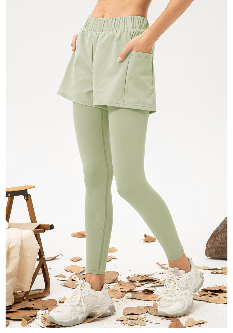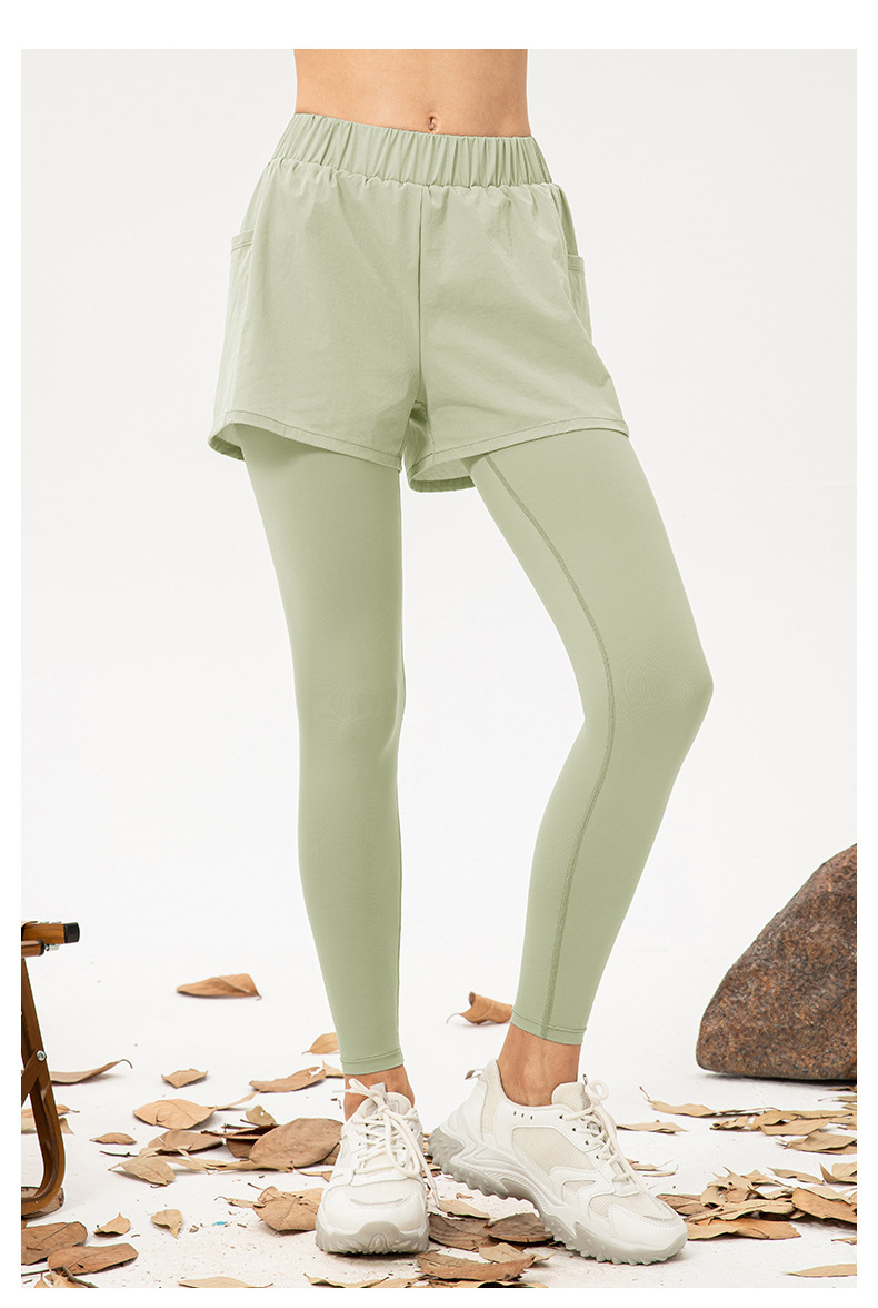 Women Faux Two Piece Yoga Trousers High Waist Hip Lift Fitness Pants Pocket Loose Breathable Running Workout Pants